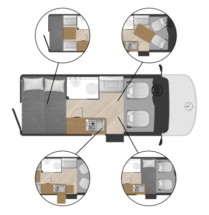 Com capacidade para até três viajantes dormirem e viverem a bordo, o projeto valoriza o uso inteligente de cada espaço, tornando o dia a dia mais prático e funcional. A cozinha bem planejada, os móveis de alto padrão e os acabamentos impecáveis seguem o mesmo cuidado artesanal da marca, garantindo uma experiência de viagem confortável e descomplicada.